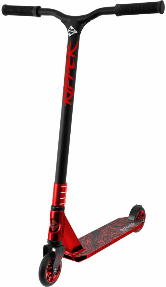 Street Surfing Ripper je freestyle koloběžka pro začínající i pokročilejší jezdce. Vyniká kvalitou zpracování, robustností a jedinečným designem s CNC obráběním. S vyztuženými řídítky širokými 54 cm a hlavovým složením s technologií HIC je předurčena pro jízdu ve skate parku a triky. Kolečka 110 mm s ložisky ABEC 9 a s kovovými jádry garantují dostatečnou pevnost a rychlost při skocích.
