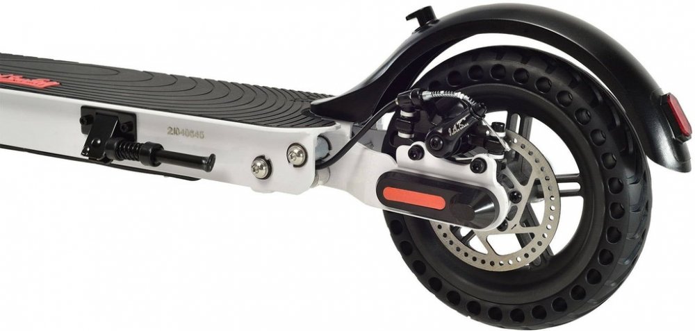 Rám koloběžky vyrobený ze slitiny leteckého hliníku a magnesia snese zatížení až 120 kg. Splňuje tak přísné bezpečnostní normy. Z důvodu bezpečnosti je doporučený věk pro používání koloběžky od 14 let.