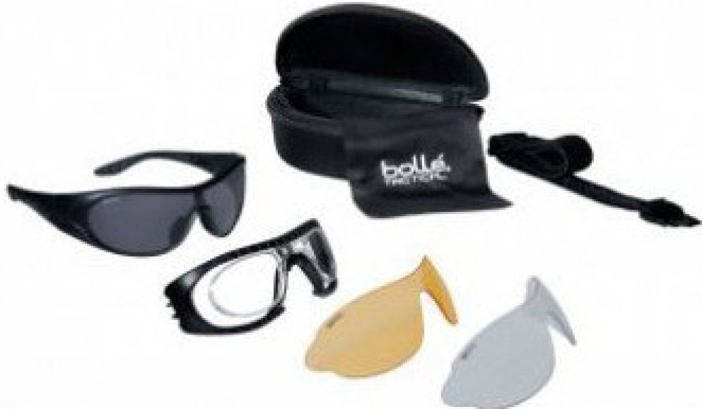 Kvalitní střelecké brýle s moderním designem Bollé s certifikací STANAG 2920 a třemi zorníky. (kouřový, žlutý pro ztížené světelné podmínky, čirý)