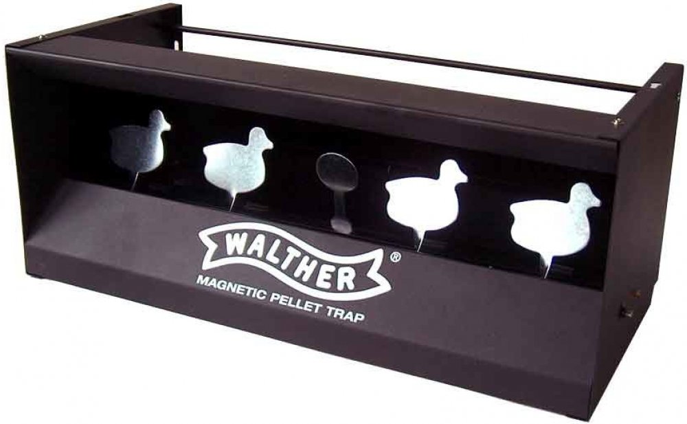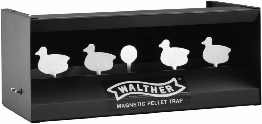 Mini střelnice Walther se čtyřmi kačenami od Walther Tato malá, ale praktická střelnice Walther je ideální pro sportovní, tréninkovou i rekreační střelbu. Je vybavena čtyřmi terči ve tvaru kačen a jedním středovým kruhovým terčem. Zásah kačeny ji zafixuje v ležící poloze díky magnetu. Po zasažení všech kačen stačí trefit středový terč a všechny kačeny se automaticky postaví zpět. Střelba tak může nerušeně pokračovat. Střelnice Walther slouží zároveň jako zachytávač střeliva. Střely se hromadí v zadní části, což usnadňuje úklid po střelbě. Střelnici lze také zavěsit na zeď. Je vyrobena z kvalitního plechu a je tak zajištěna její dlouhá životnost. Střelnice je vhodná pro vzduchové pistole s energií do 10 J na vzdálenost od 10 metrů a pro dlouhé vzduchovky s energií do 16 J od 15 metrů. Je velmi důležité znát energii své zbraně a zvolit správnou vzdálenost, aby nedošlo k poškození střelnice. Doporučuje se používat olověné diabolo střelivo se standardní půlkulatou nebo plochou hlavičkou. Použití výkonnějších zbraní nebo průrazného střeliva může vést k rychlému opotřebení a poškození. Vlastností mini střelnice terče 4x kačena a 1x kruhový terč mechanismus: magnetické uchycení, automatické resetování materiál: plech (1mm střelnice, 2mm kačeny) kompatibilita: vzduchové pistole do 10 J (od 10 m), vzduchovky do 16 J (od 15 m) zachytávač střeliva možnost zavěšení doporučené střelivo: olověné diabolo