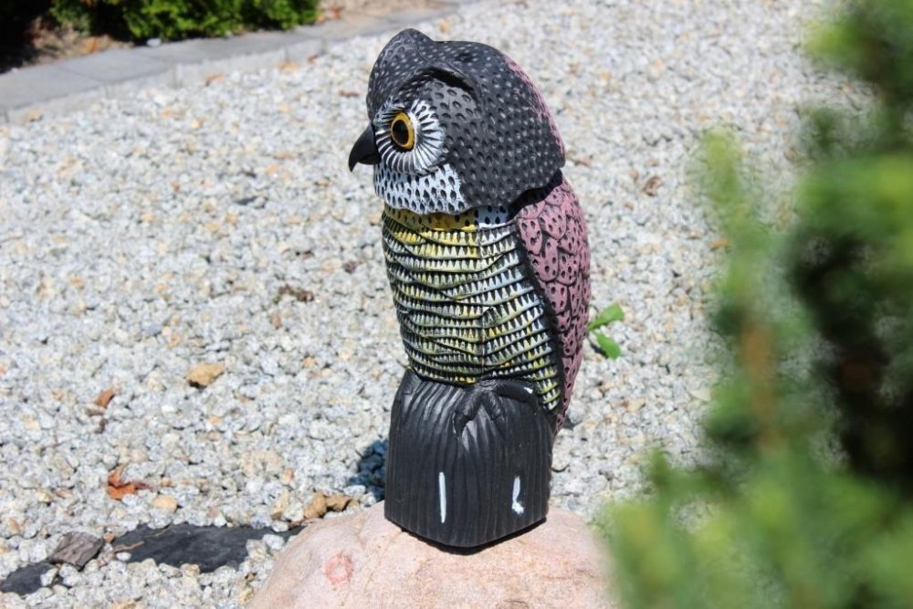 Tvary, proporce, barva a rozměry skvěle napodobují skutečného ptáka.K plašení ptáků v sadech a vinicích nebo vynikající dekorace do každé zahrady.Vyrobeno z velmi odolného plastu.