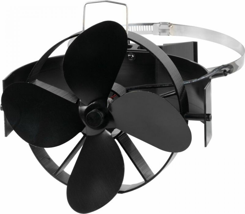 Ventilátor na kouřovod magnetický – teplem poháněný krbový ventilátor je termoelektrický ventilátor, který se upevňuje přímo na kouřovod a pomáhá rozptylu tepla do prostoru. Díky uchycení magnetem a stahovací sponou je určen pro kouřovody do Ø 160 mm a pracuje bez elektřiny – po zahřátí se automaticky roztočí (cca od 50 °C) a po vychladnutí se zastaví.