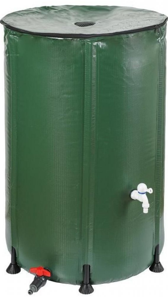Praktický skládací barel určený na zachytávání a skladování dešťové vody, která může být určena na následné zalévání záhonů a zahrad, nebo pro jiné využití.