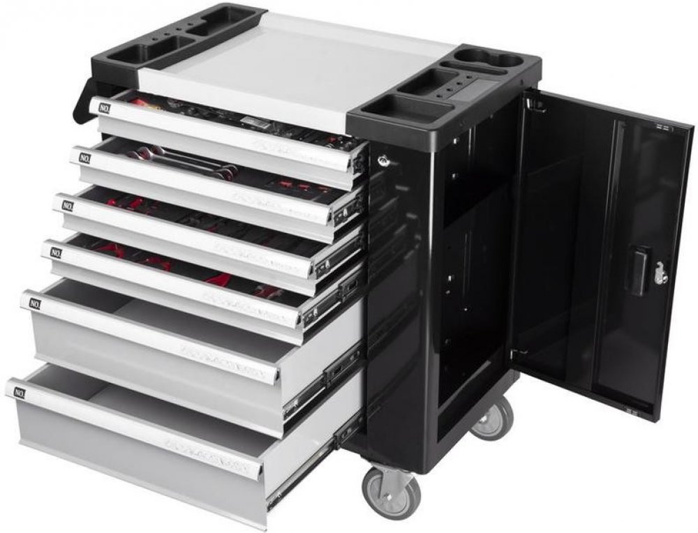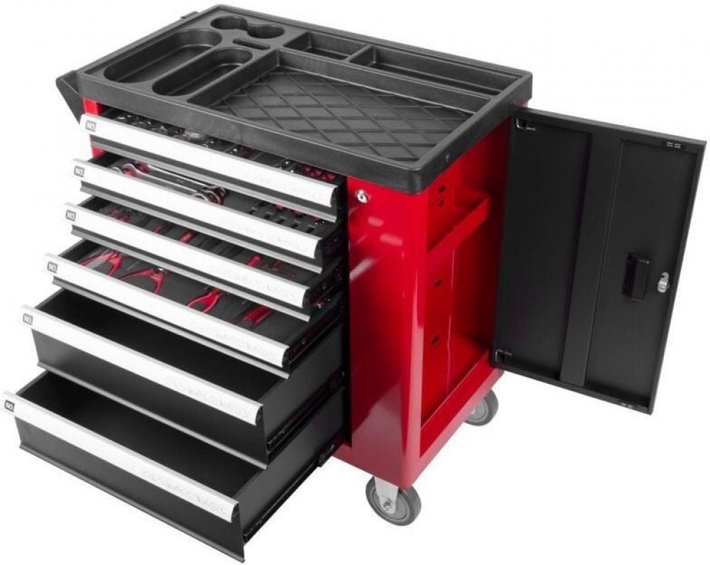 Dílenský vozík s nářadím Strend Pro obsahuje 245 kusů nářadí, které nesmí chybět v žádné dobře vybavené dílně.Obsahuje 6 různých zásuvek, ve kterých jsou dokonale uspořádány různé druhy nářadí. Dílenský vozík obsahuje:- 13x klíč očko-vidlicový, ráčnový- 23x bit T8, H3, PZ1- 9x imbusový klíč- 9x prodloužená hlavice 1/4"- 6x PH šroubovák- 6x PL šroubovák- 6x T šroubovák- 1x kombinované kleště- 1x kleště s dlouhým nosem- 1x štípací kleště- 1x kleště na trubky- 1x samosvorné kleště- 4x kleště na pojistné kroužky- 3x ráčna- 13x 1/4" hlavice- 15x 3/8" hlavice- 17x 1/2" hlavice- 1x šroubovák 1/4"- 3x vratidlo 1/4", 3/8", 1/2"- 2x 3/8" hlavice prodloužená- 2x 1/4" hlavice prodloužená- 2x 1/2" hlavice prodloužená- 3x kardaň- 102x hmoždinka.Váha celého vozíku: 57kg. Doručujeme jako XXL zásilku na paletě, u které se nevztahuje doprava zdarma.
