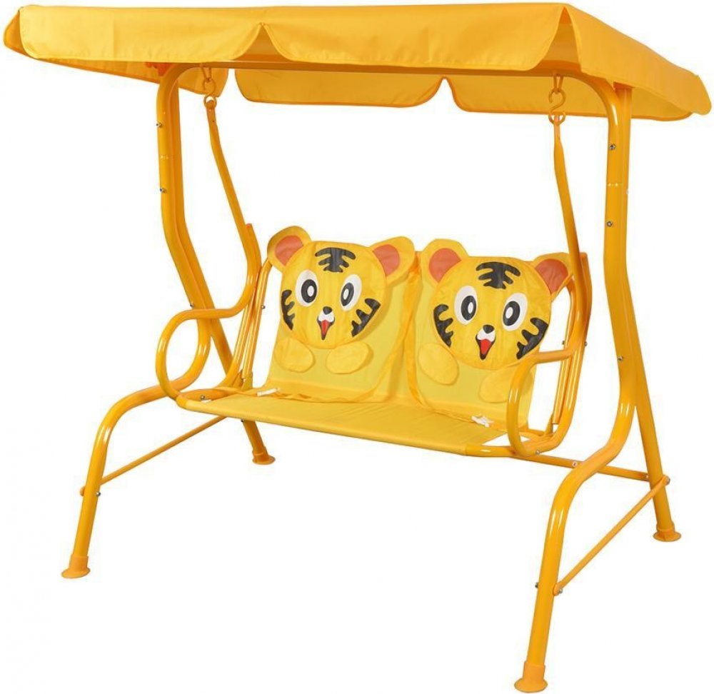 Dětská houpačka s veselým motivem tygříků nabízí spoustu zábavy pro nejmenší ratolesti.Je určena pro maximálně 2 děti.Sedací část obsahuje také upínací popruhy, které můžete zapnout dítěti kolem břicha. Rozměr: 115x75x110 cm a maximální nosnost je 80 kg.Houpačku nepřetěžujte, může dojít k jejímu poškození a k poranění.Barva: žlutá s motivem tygříků.Houpačku je třeba položit na rovný povrch.Technické parametry:Počet osob: 2Šířka (cm): 115Výška (cm): 110Délka (cm): 75Materiál: kov + 210D Oxford + 170THoupačka: AnoOhrádka: NeNosnost (kg): 80Konstrukce: kovBarva: žlutáUrčení: dětskéDoporučený věk (filtr): 3+ rokyDruh dětské houpačky: houpačky pro nejmenší