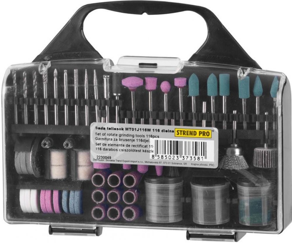 Strend Pro RTG1016, 116 dílů, mini, přímá bruska, se stopkou