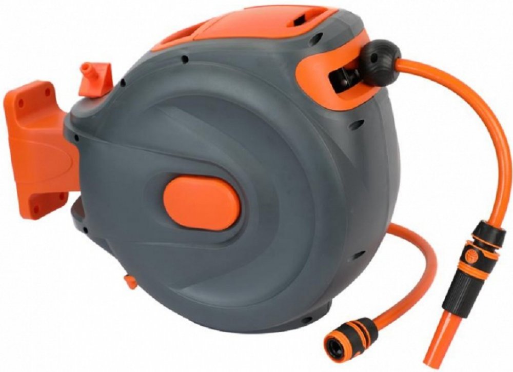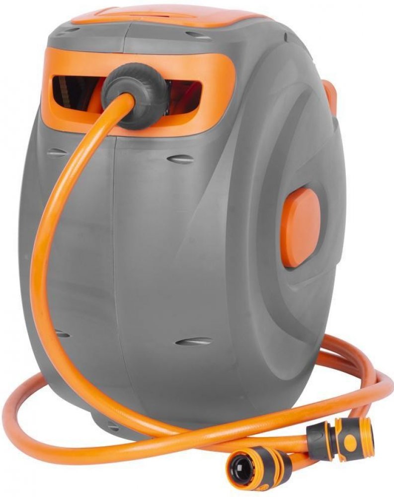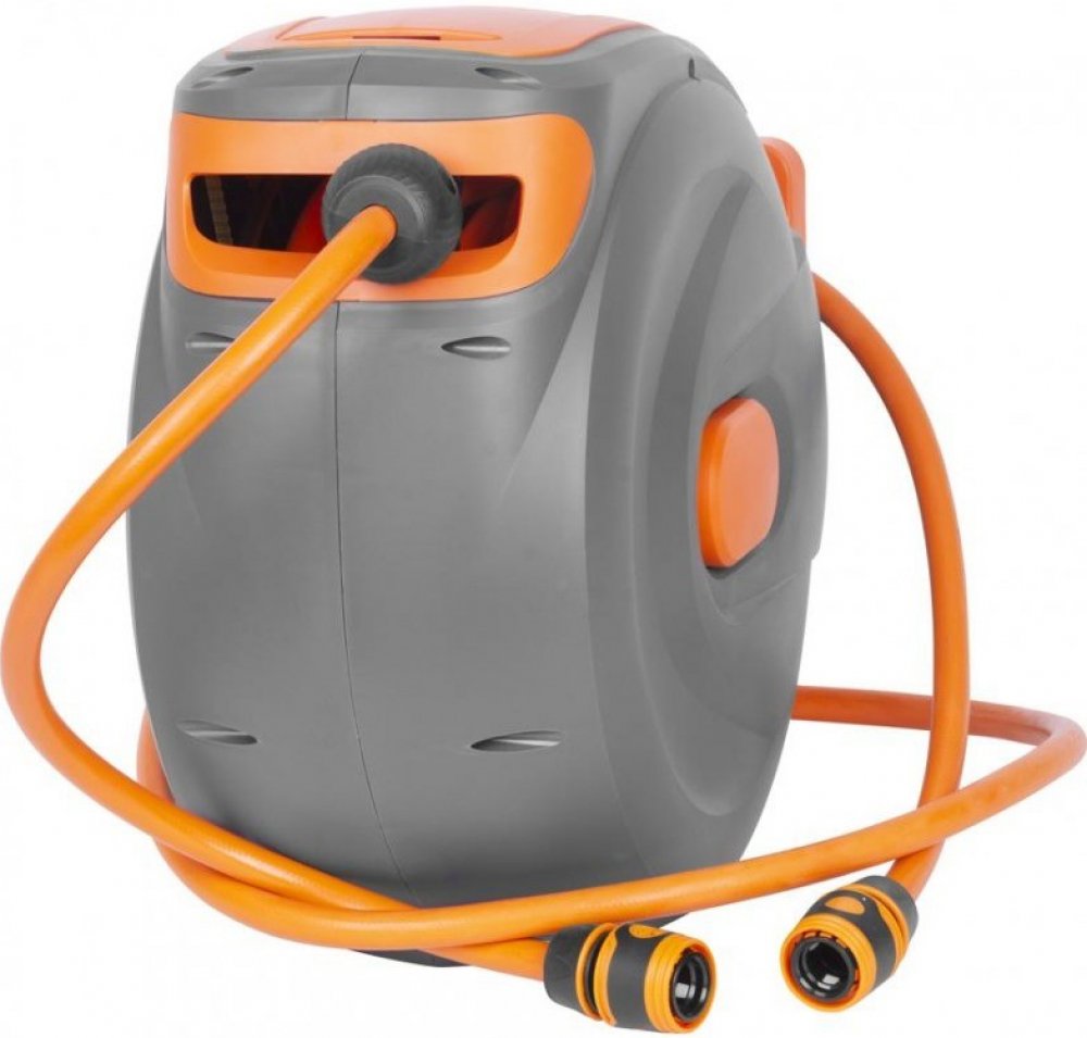 - praktický elegantní držák na zeď s automatickým navíjením zahradní hadice