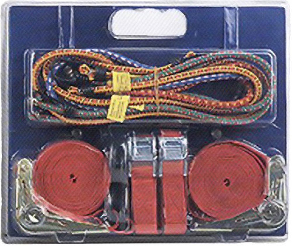 Popruh upínací Strend Pro je spoľahlivý pomocník pre prepravu nákladu a zabezpečenie predmetov v aute. S maximálnou nosnosťou a balením obsahujúcim všetko potrebné poskytuje bezpečné a stabilné upevnenie každého nákladu. S dvoma pásy s račňou, dvoma pásy so sponou a osem upínacími gumami je tento set ideálny pre rôzne úlohy a situácie.
