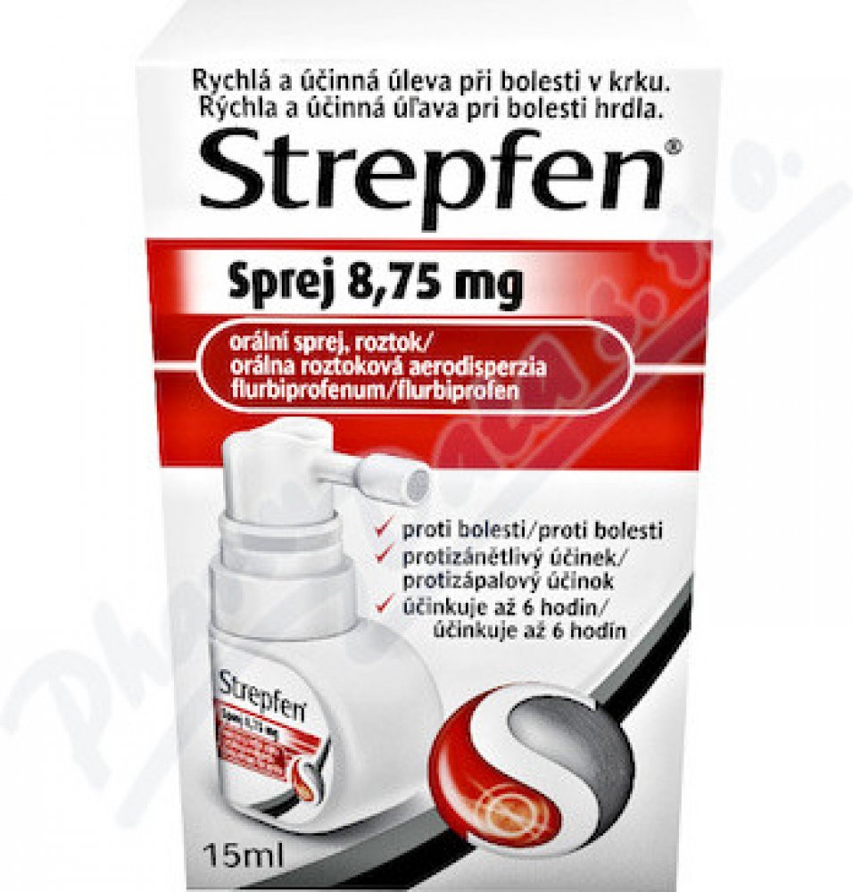 Strepfen sprej krátkodobě zmírňuje akutní bolest a škrábání v krku u dospělých od 18 let. Pomáhá ulevit při potížích s polykáním a zklidňuje otok hrdla. Roztok má příchuť medu a citronu.