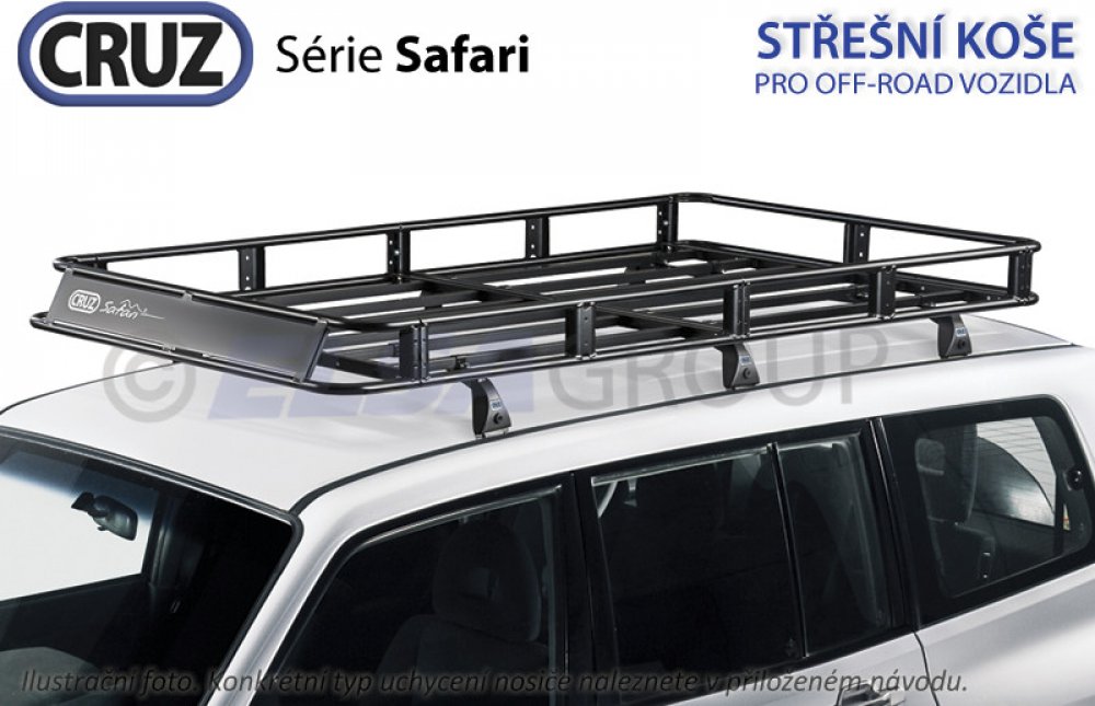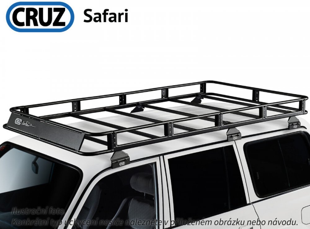 Kompletní střešní koš. Obsahuje modul střešního koše Safari + typový upevňovací kit. Střešní koše CRUZ Safari speciálně navržené pro off road vozidla. Robustní střešní koš s vysokou nosností. Boční zábrany po celém obvodu koše. Integrovaný větrolam zlepšuje aerodynamiku a bezpečnost. Kompatibilní s veškerým příslušenstvím Cruz.