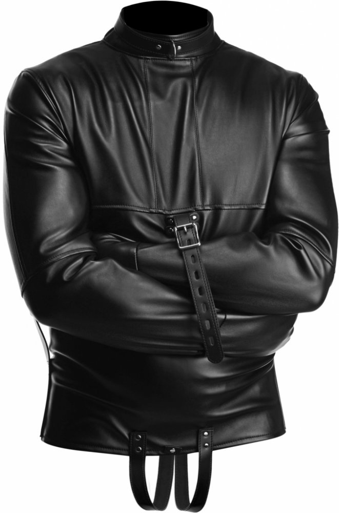 Absolutní omezení pohybu rukou pro váš submisivní protějšek a sexy vzhled k tomu! Tato unisex bunda je vyrobena z vysoce kvalitní PU kůže a poslouží všem milovníkům fetiše. Stačí do ní zasunout paže, dotáhnout přezky na zadní straně, zachytit popruhy na konci rukávů a utáhnout také popruh v přední části. Tato bunda je vskutku perfektním BDSM doplňkem, tak nezapomeňte ani na připojení vodítka ke kr...