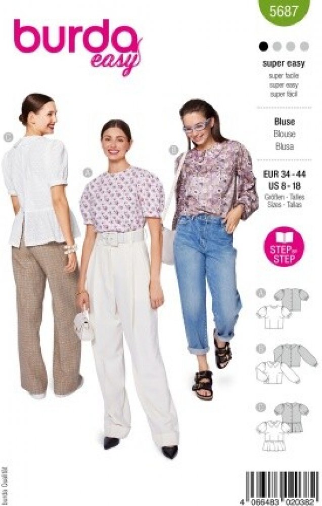 Střih Burda 5687 na dámské halenky - kombinace 3 střihy