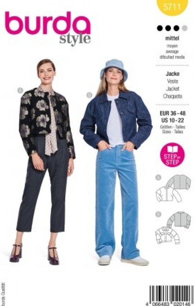Střih Burda 5711 na dámský kabátek - kombinace 2 střihy