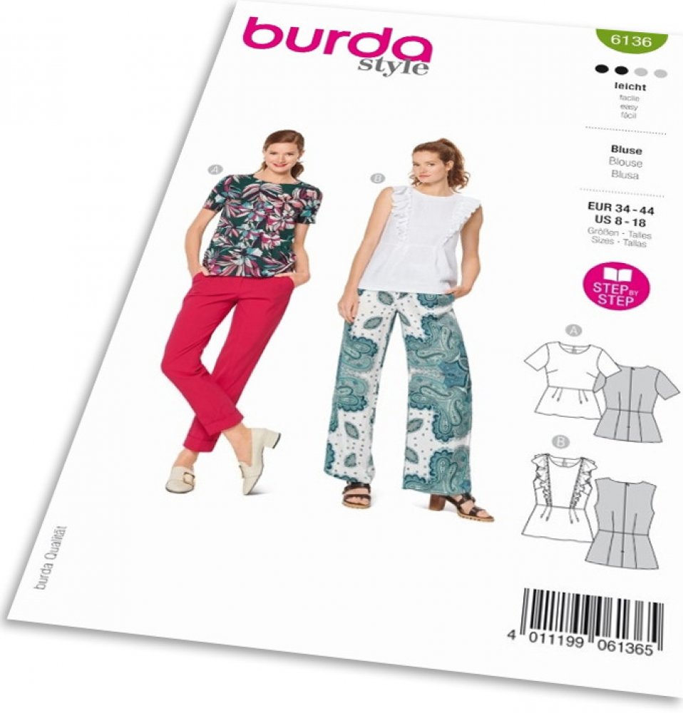 Střih Burda 6136 - Peplum halenka, halenka bez rukávů