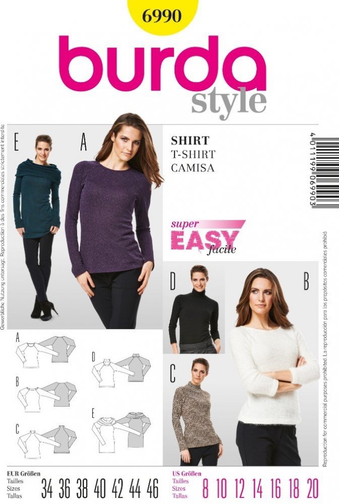 Střih Burda číslo 6990 jednoduché tričko, rolák