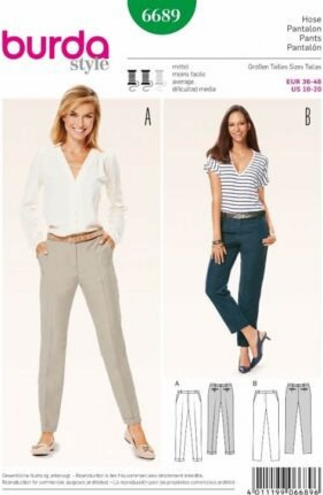 Střih Burda zelený 6689 - dámské cigaretové kalhoty a kalhoty s puky je soubor střihů pro ušití dámských cigaretových kalhot a kalhot s puky. Střihy jsou natištěné na kvalitním křídovém papíru. Soubor obsahuje střihy pro ušití dámských cigaretových kalhot a kalhot s puky. Díky jednoduchému střihu, podle kterého zvládnou šít i začátečníci, získáte originální modely pro Váš šatník. Rozšiřte si svůj šatník o originální vlastnoručně ušité kousky. Střihy jsou s přídavky na švy ve velikosti 36 - 46. Pokud chcete střihy dále používat, je doporučeno si je překreslit. Potřebné pomůcky naleznete i v našem obchodě. Úroveň obtížnosti: střední Velikosti: 36 - 46 Doporučené látky: bavlna, lehčí vlněné látky, gabardén, tencel Ke střihům Burda je poskytován tištěný obecný návod pro práci se střihy v českém jazyce. Podrobnější návod pro práci se střihem je obrázkový s cizojazyčným popisem.