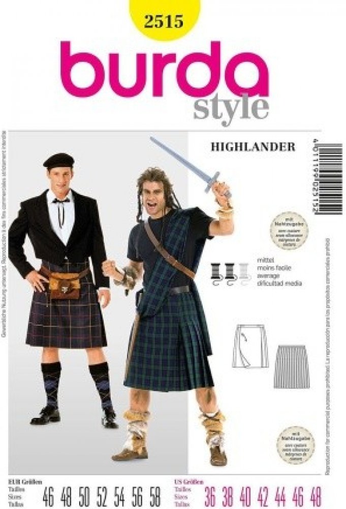 Střih SKOTSKÁ SUKNĚ - KILT Burda 2515 - Highlander, Brave heart