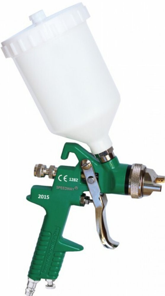 Pistole Speedway HVLP je charakteristická svou vysokou kvalitou za velmi příznivoucenu. Systém HVLP zajišťuje efektinější přenos materiálů než u systému HP. Pistole najde uplatnění při nástřiku vrchních vodouředitelných laků, akrylových plničů, stříkacích tmelů či metalických nebo perlových laků.Balení obsahuje: stříkací pistoli, nádobku, sadu klíčů, plastové sítko.