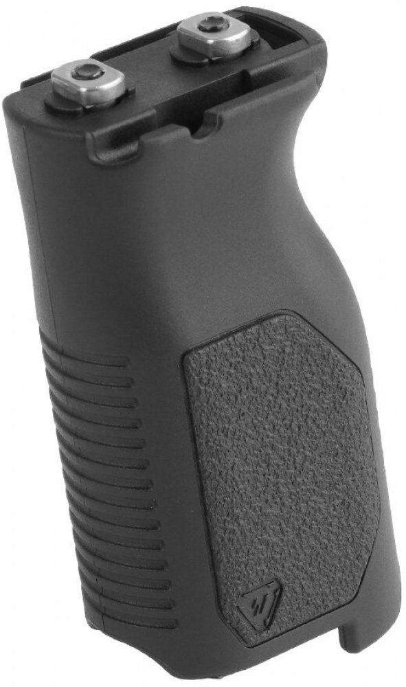 Angled Vertical Grip je přední rukojeť se standardní montáží pro M-LOK. Grip se vyznačuje tím, že umožňuje uschovat nebo jen fixovat kabely od svítilny nebo třeba laseru. V horní části držáku jsou otvory - průvleky, takže přebytečný kabel můžete skrýt uvnitř gripu. Angled Vertical Grip je vyroben z odolného polymeru s protiskluzovou texturou po stranách. Uživatel může namontovat verzi LONG v obou směrech - šikmo k hlavni nebo pažbě. Součástí sady je i torx klíč a Loctite® Threadlocker Blue 242® pro pojištění šroubů.