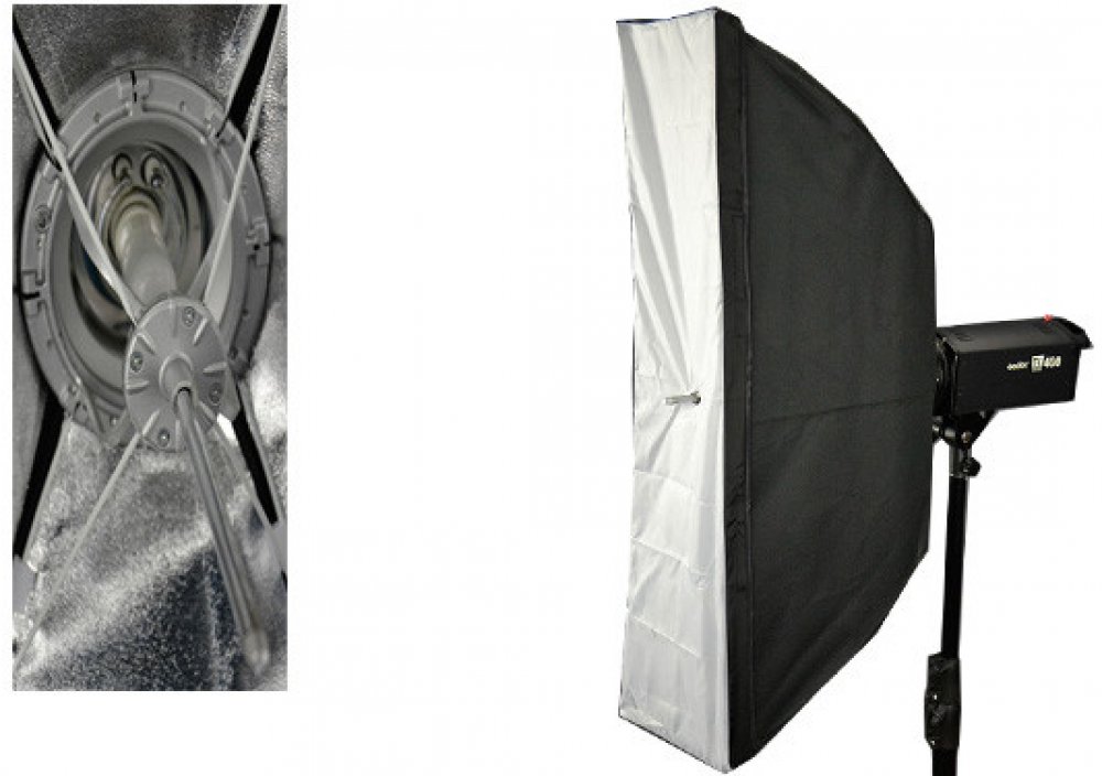 Softbox vytváří měkké světlo vhodné pro vytváření kvalitních fotografií bez odlesků. Rovnoměrné rozprostření světla zajišťuje stříbřitá odrazová plocha a vnitřní a vnější difuzér. Tento typ softboxu se dá libovolně otáčet.