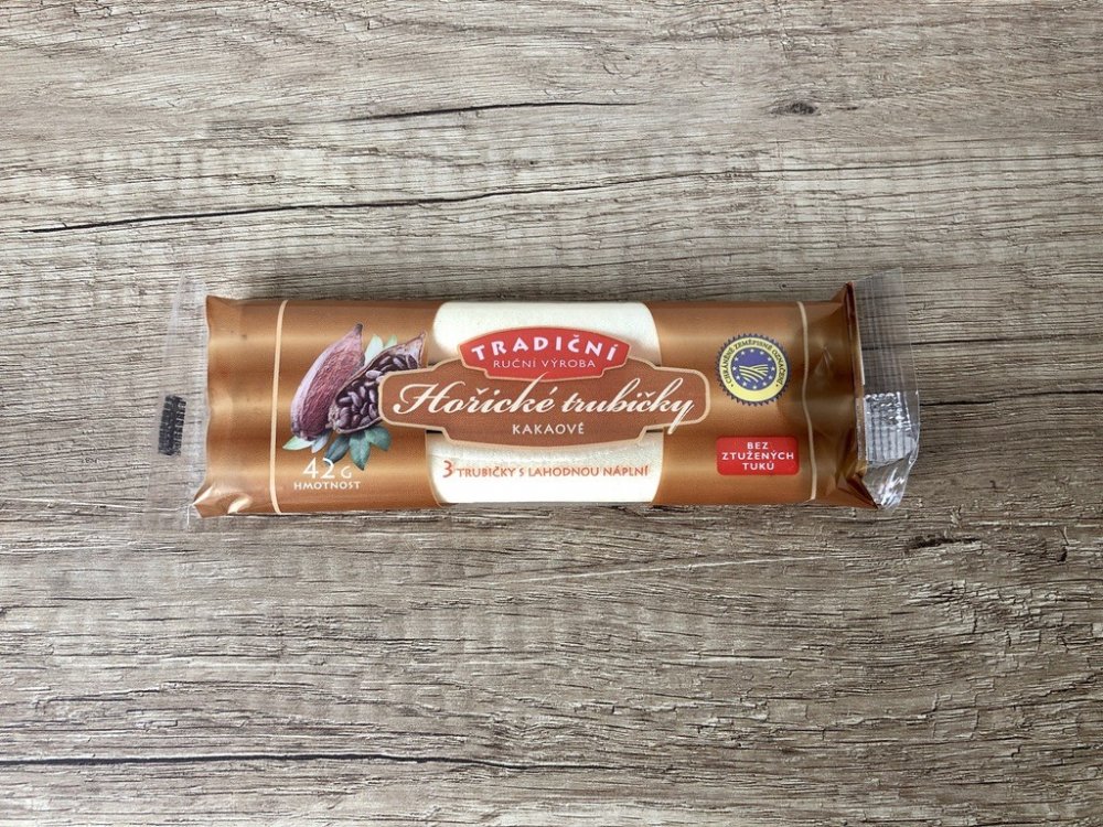 Kakaová náplň: rostlinný tuk palmový, cukr, kakaový prášek 5%, sušená syrovátka, sušené mléko, sójová mouka, vanilín, aroma.