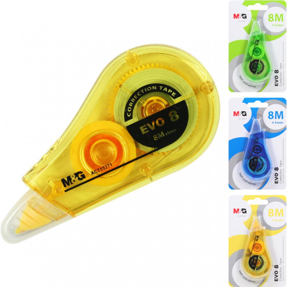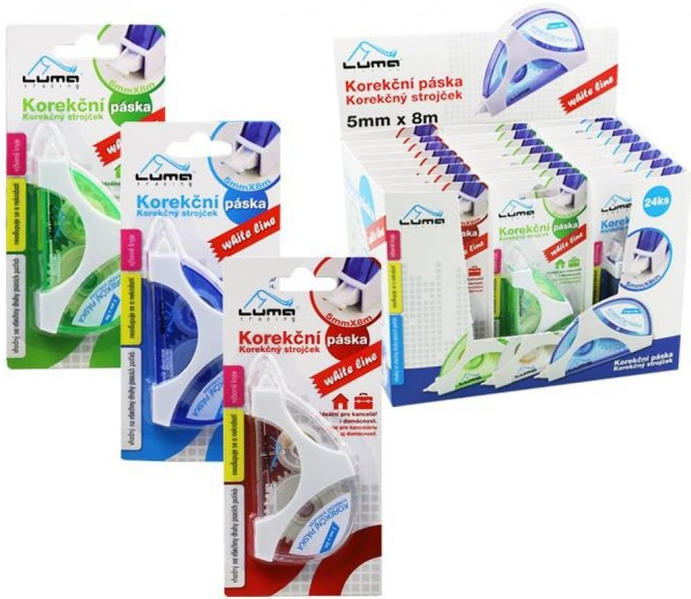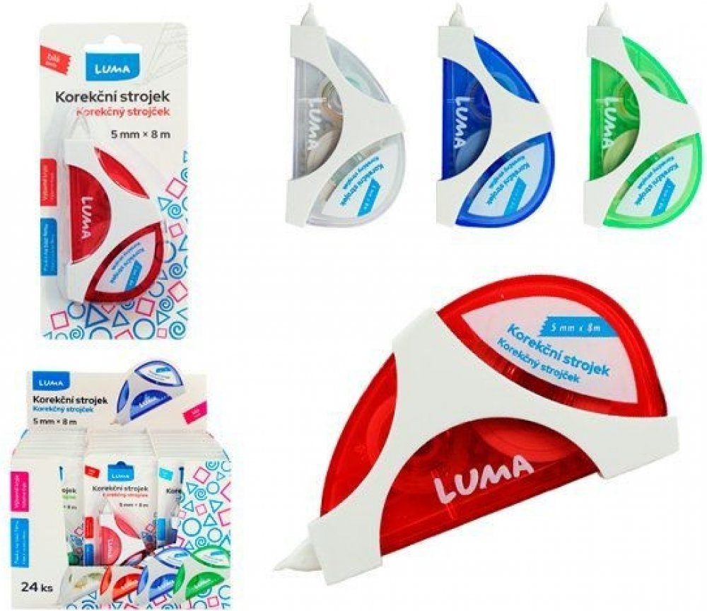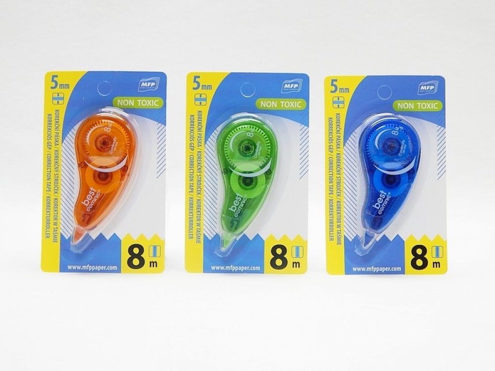 Korekční jednorázový strojek s hladkým tělem a plynulým odvinem pásky. Korekce za sucha umožňuje okamžité přepsání. Nezanechává stopy na fotopopiích. Jednoduché a rychlé použití, čistá a suchá korekce.