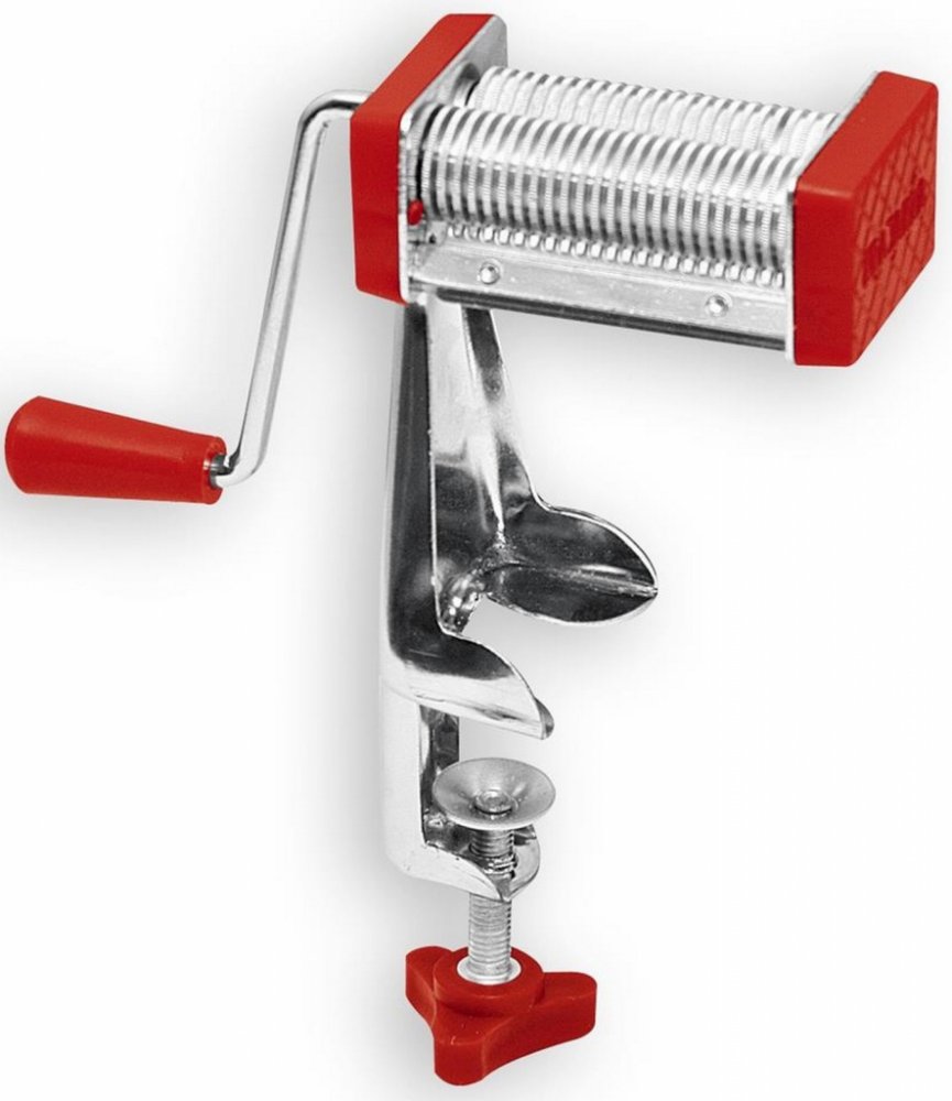Strojek na polévkové nudle Vám výrazně zjednoduší práci při přípravě domácích nudlí do polévky. Ruční, mechanický, krájí proschlé vyválené pláty nudlového těsta na jemné polévkové nudle. Plát můžeme nařezat před krájením přímo na požadovanou délku nudlí, nebo na strojku nařežeme dlouhé nudle, které pak nakrájíme na podložce na potřebnou délku. Strojek upevníme k podložce pomocí šroubu. Rozměr - vý...