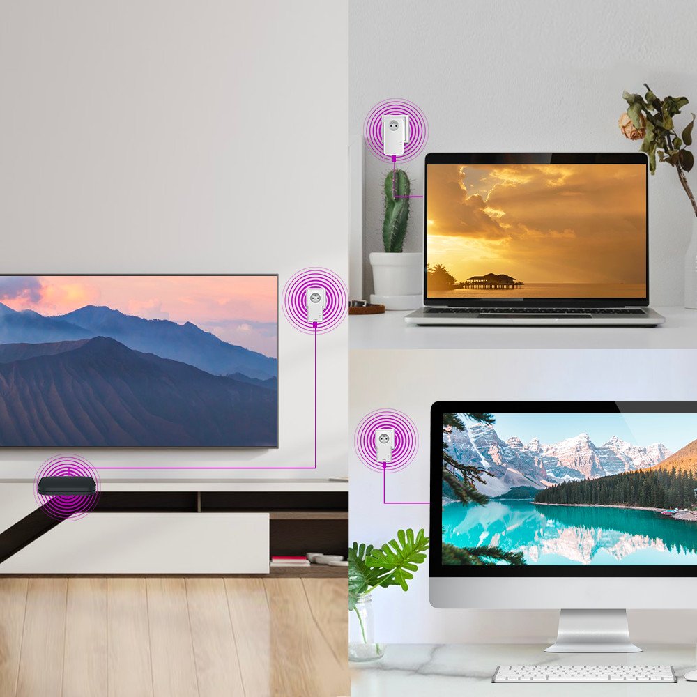 Sada obsahující 3 adaptéry umožňuje velmi snadným způsobem využívat vysokorychlostní připojení k internetu s rychlostí až 1000 Mb/s. S funkcí MIMO 2x2 nabízí stabilní přenos dat pomocí stávající elektrické sítě ve vaší domácnosti. Stačí připojit jeden adaptér k vašemu internetovému modemu prostřednictvím ethernetového portu a vaše internetové připojení bude okamžitě dostupné z jakékoli elektrické zásuvky pomocí druhého a třetího adaptéru. Navíc nepřijdete o žádnou elektrickou zásuvku, protože adaptéry jsou vybaveny vlastní elektrickou zásuvkou s odrušovacím filtrem.