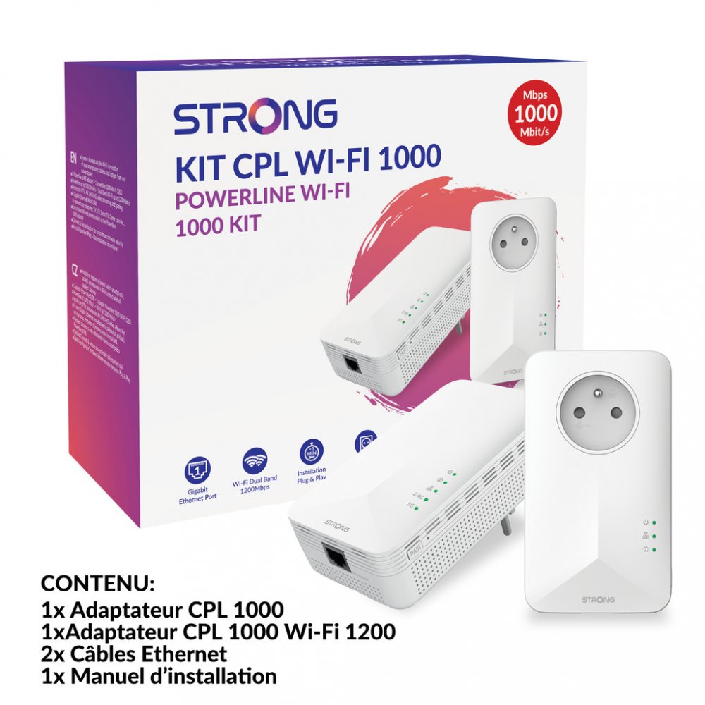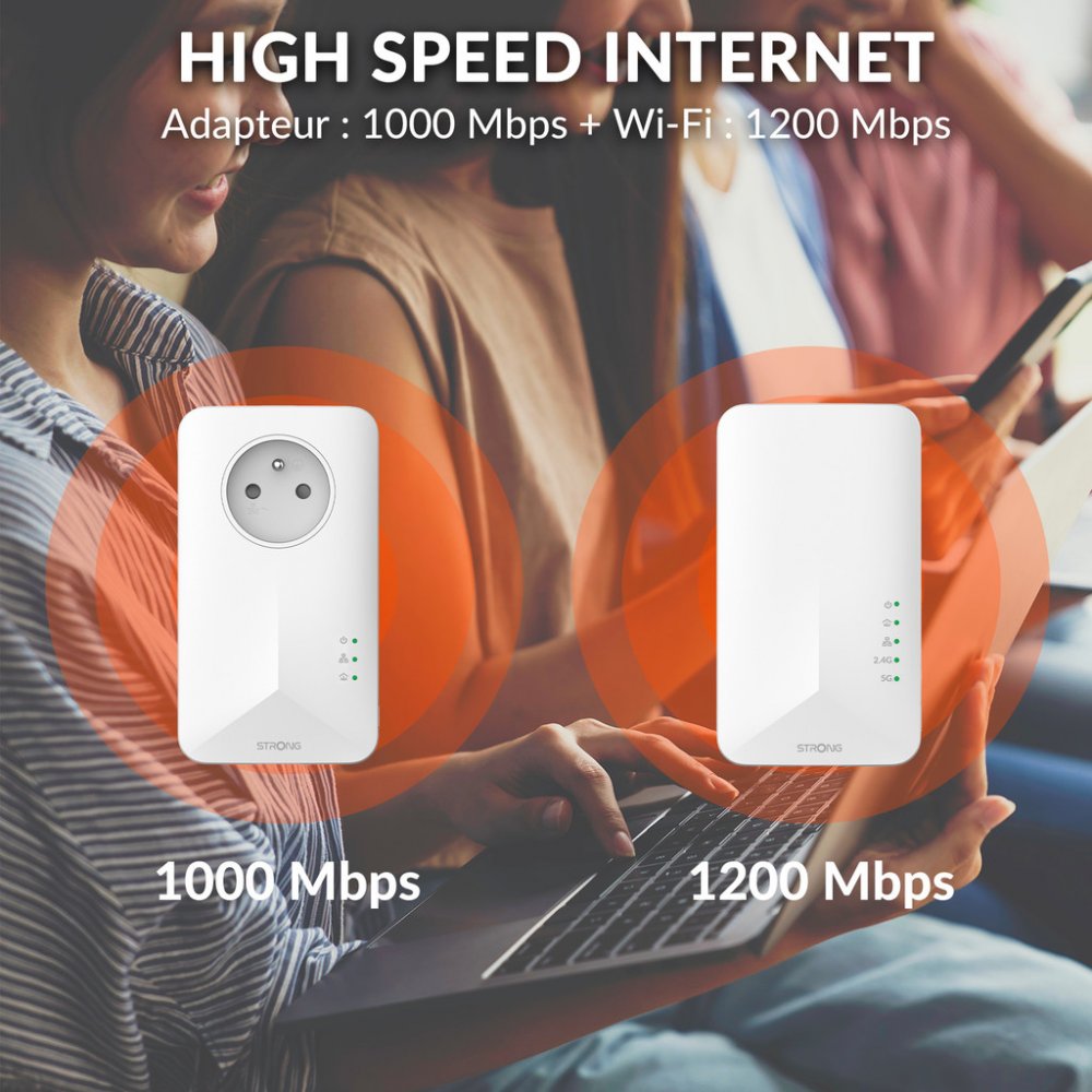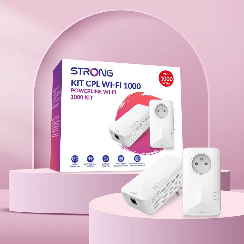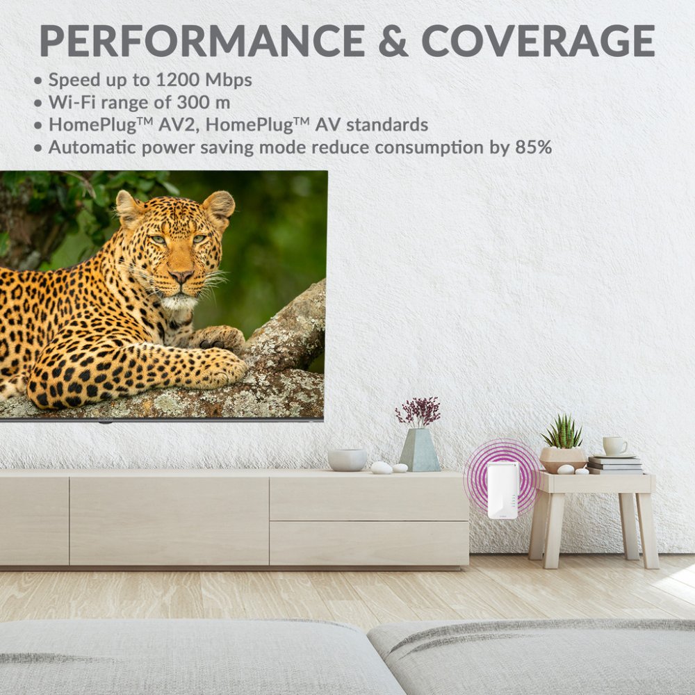 Sada obsahující jeden adaptér Powerline 1000 a jeden adaptér Powerline Wi-Fi 1000. Umožní velmi snadno vytvořit vysokorychlostní Wi-Fi hotspot s rychlostí až 300 Mb/s při 2,4 GHz a 867 Mb/s při 5 GHz. Stačí připojit jeden adaptér k vašemu internetovému modemu prostřednictvím ethernetového portu a vaše internetové připojení bude okamžitě dostupné z jakékoli elektrické zásuvky pomocí druhého adaptéru. Díky tomu můžete vytvořit Wi-Fi hotspot ve vybrané místnosti a rozšířit tak pokrytí signálu ve vaší domácnosti. Navíc nepřijdete o elektrickou zásuvku, protože adaptér Powerline 1000 je vybaven vlastní elektrickou zásuvkou.
