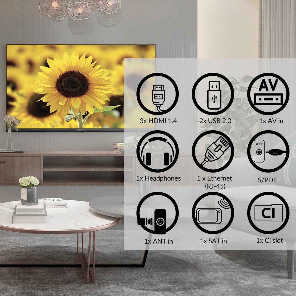 Kompaktní smart televizor Strong SRT40HD5553 do každé běžné domácnosti. Obrazovka s úhlopříčkou 40 palců se vměstná do jakékoli místnosti na TV stolek, ideální je také do obývacích stěn v menších až středních bytech. Rozlišení Full HD vám zprostředkuje ostrý a jasný obraz, útlý design s tenkými rámečky působí patřičně elegantním dojmem a skvěle zapadne do moderního interiéru. Bezdrátové připojení skrze Wi-Fi je snadné a zprostředkuje vám moře digitální on-line zábavy z nejoblíbenějších platforem jako YouTube, Netflix apod.