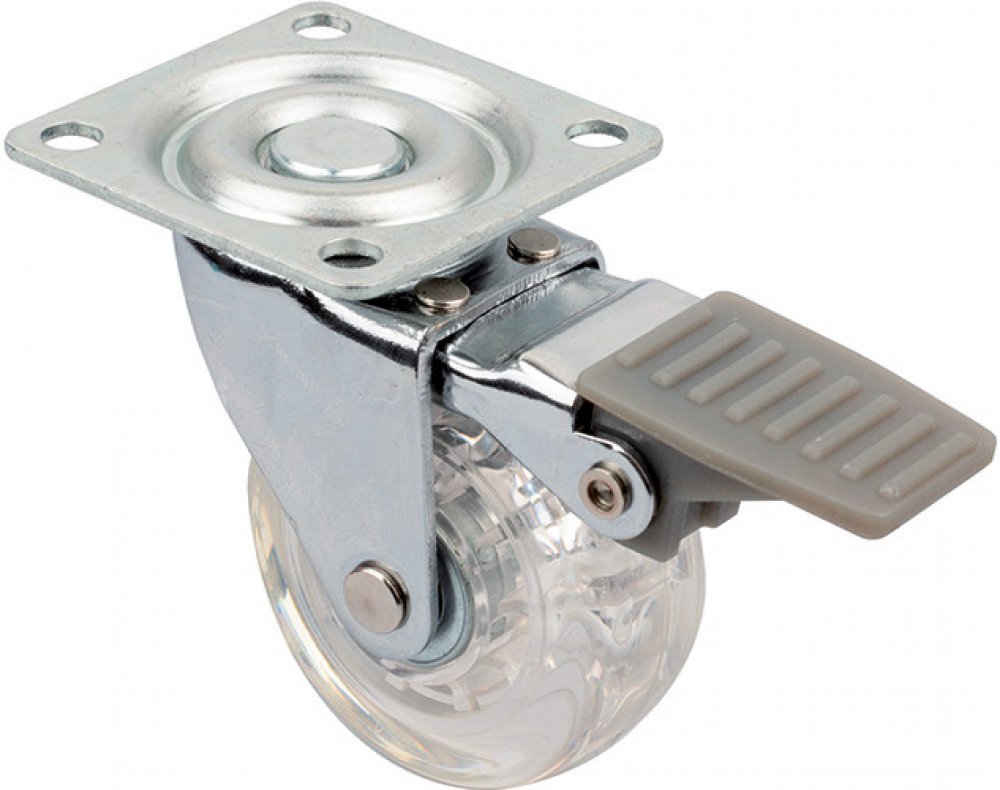 Otočné kolečko, průměr 50 mm s brzdou, barva transparentní čirá Kovová část v chromu Nosnost 35 kg