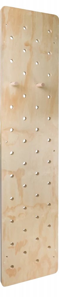 Deska PegBoard je vyrobená z bytelné překližky o tloušťce 4 cm. Díky šesti otvorům pro uchycení na zeď bude lezecká stěna maximálně stabilní a odolná. Každý váš pohyb bude bezpečný.