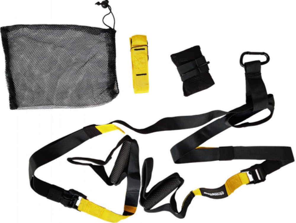 Závěsný posilovací systém StrongX je všestranná posilovací pomůcka využívající odporu vlastní váhy. Je dokonalým pomocníkem při formování postavy a získávání sportovní kondice. V současné době patří k nejoblíbenějším fitness pomůckám na trhu. Velice těžko budete hledat fitness centrum, ve kterém by ji neměli. To ukazuje na univerzálnost a skvělou praktičnost této pomůcky, která je populární mezi osobními trenéry. Závěsný systém je tvořen dvěma popruhy s madly, které umožnují různé nastavení délek pomocí kovových spon. Cvičit s ním můžete opravdu kdekoliv, díky nízké hmotnosti a snadné skladn osti ho lehce sbalíte a zavěsíte na místě, kde potřebujete. Lze ho zaháknout za kteroukoliv konstrukci, zábradlí, strom nebo dveře. S naším závěsným systém se nebudete moci vymluvit na to, že nemate kde cvičit, protože StrongX umožnuje desítky variant uchycení na různých místech. Cvičení tak nebylo nikdy dostupnější. Stačí vám pouze jedna pomůcka pro dokonalý trénink celého těla. Skutečně s ním odcvičíte všechny svalové partie, které existují. Zároveň jej můžete využít ke strečinku nebo skupinovým lekcím.