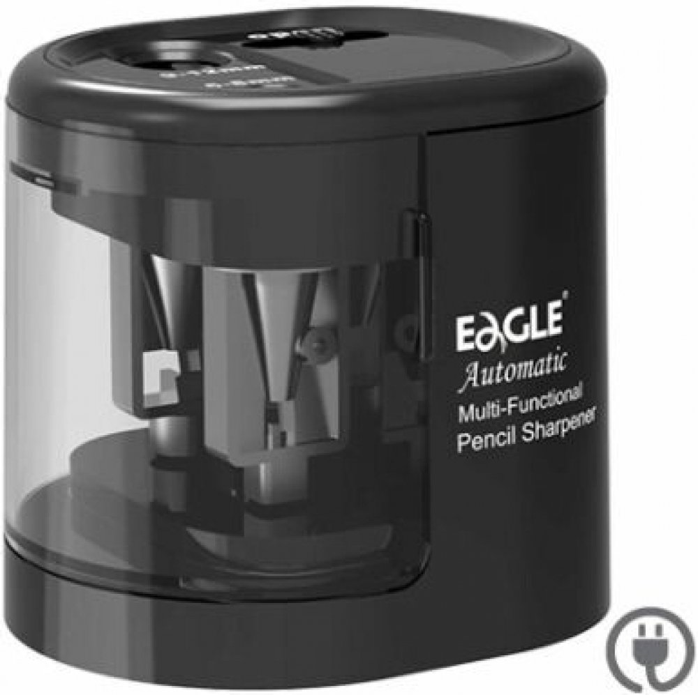 Automatické struhadlo na tužky dvou rozměrů 6-8 mm a 9-12 mm. Struhadlo obsahuje odpadní nádobu . Napájení ze sítě 230V, součástí balení je adaptér nebo na baterie - 4x AA 1,5V nejsou součástí balení. Rozměr: 84x72x76 mm.