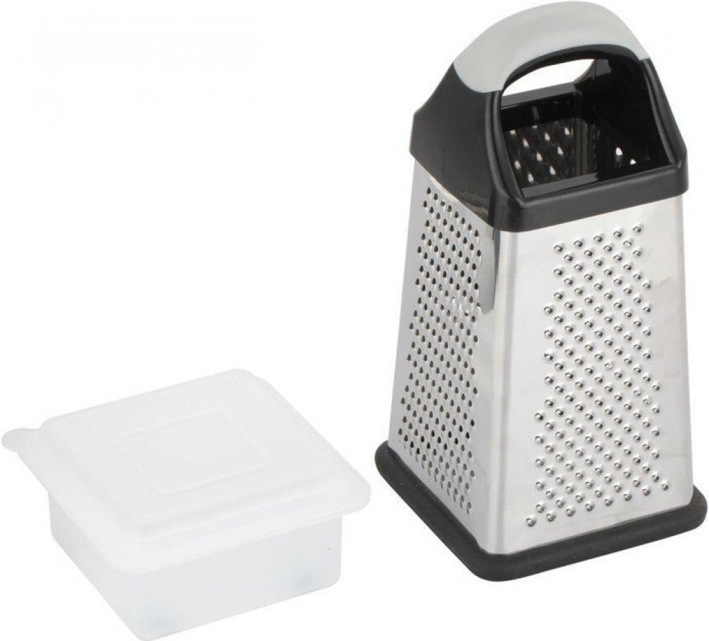 Struhadlo s nádobkou rozměr PH nádoby: 10,5 x 10,5 x 5,2 cm celková výška vč. PH nádoby: 26,2 cm barva plastu: šedá - čtyřhranné struhadlo - s plastovou rukojetí, která dobře padne do ruky - nádobka pro nastrouhané potraviny Praktické struhadlo vyrobené z nerezové oceli s plastovou rukojetí je super pomocník do vaší kuchyně. Jednoduše nastrouháte zeleninu nebo sýr pro vaše pokrmy, nádobka pro nastrouhané potraviny je součástí balení.