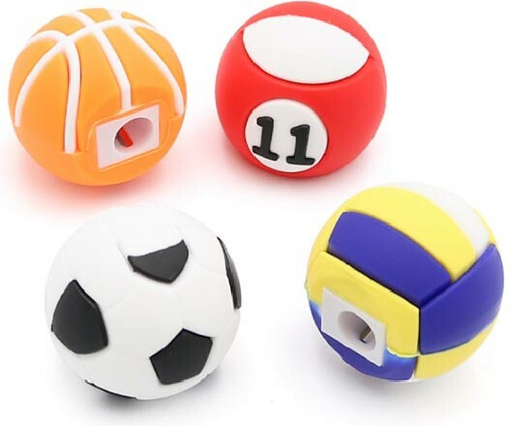 Dětské ořezávátko na tužky nebo pastelky ve tvaru sportovních míčů.