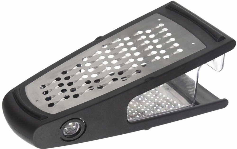- Kuchyňské struhadlo s 2strannou nádobou, ideální pro strouhání různých druhů surovin. Vybavena dvěma ostrými čepelemi pro různé úkoly. Vyrobeno z nejkvalitnější nerezové oceli ve stříbrné barvě a plastu v černé barvě. Nádoba vyrobený z odolného plastu v průhledné barvě se skvěle hodí pro sběr nastrouhaných produktů a umožňuje jejich snadné přenášení do jiného nádobí nebo přímé použití v pokrmu. Je vybavena silikonovými podložkami v černé barvě. Vhodné pro mytí v myčce nádobí. Kuchyňské struhadlo o rozměrech 24 x 11 x 10 cm. Nezbytná v každé kuchyni.
