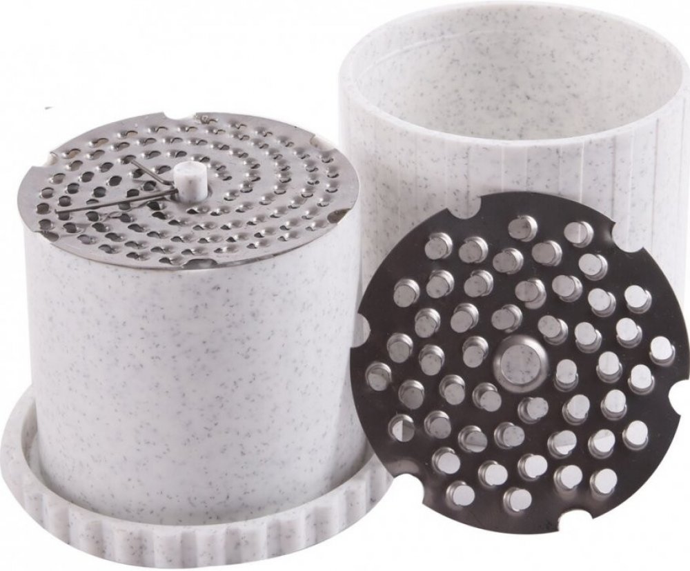 Rotační struhadlo snadno a pohodlně nastrouhá sýry, čokoládu, oříšky, piškoty, vajíčka i měkký salám. Skládá se ze tří plastových částí a tří výměnných planžet.