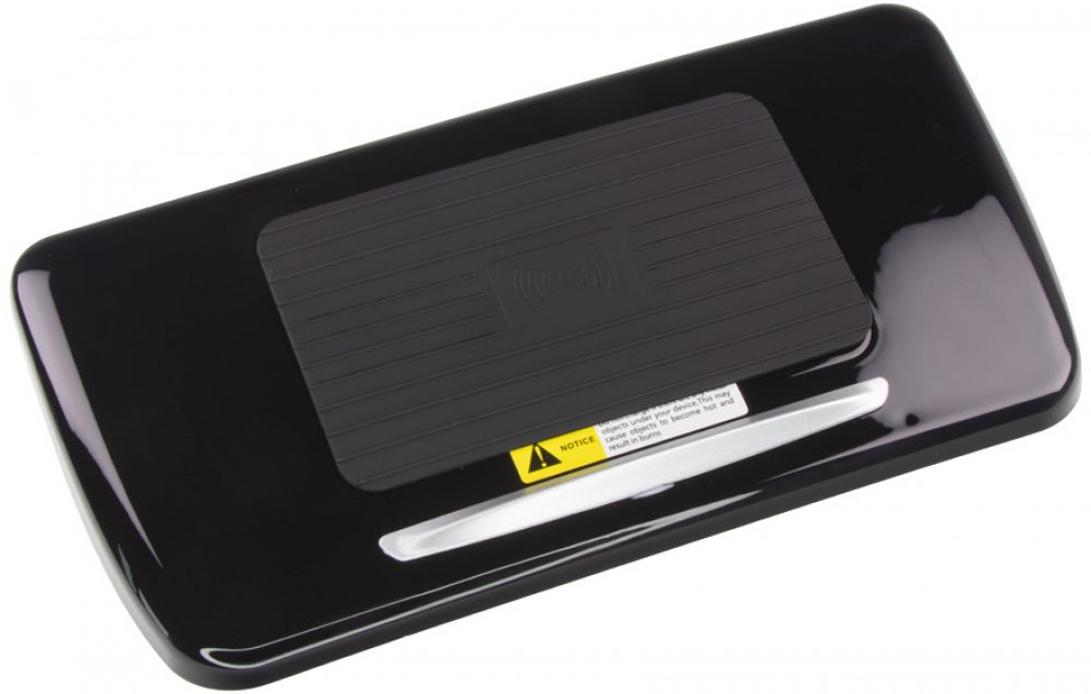 Nabíjecí přihrádka pro bezdrátové dobíjení mobilních telefonů prostřednictvím technologie Qi.
