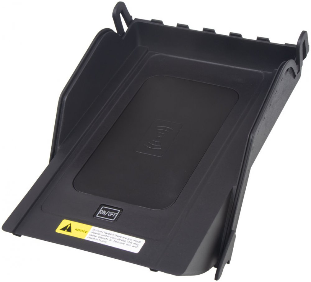 Nabíjecí přihrádka pro bezdrátové dobíjení mobilních telefonů prostřednictvím technologie Qi.