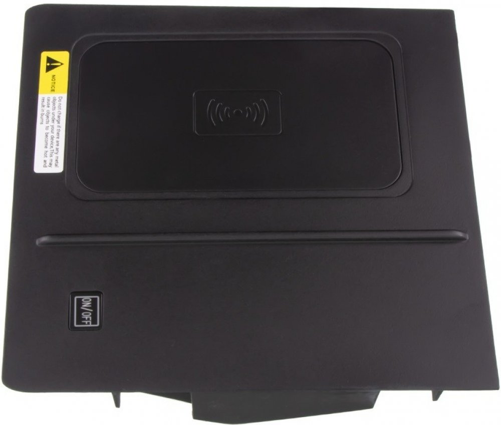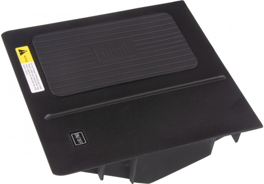 Nabíjecí přihrádka pro bezdrátové dobíjení mobilních telefonů prostřednictvím technologie Qi.