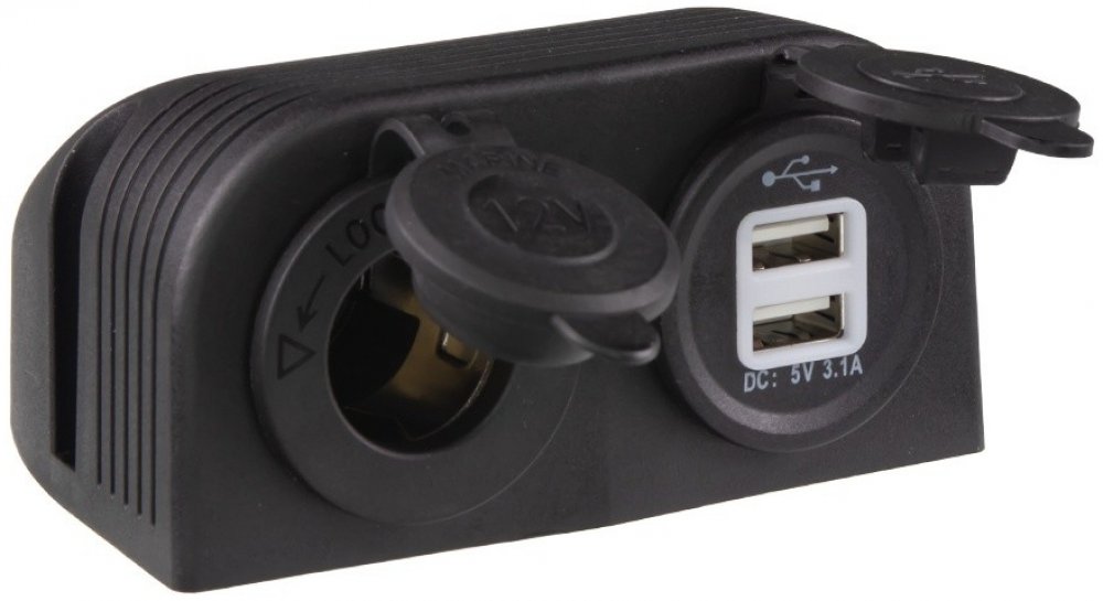 Dvojitá zásuvka s panelem 1x CL + 2x nabíječka USB voděodolná.(modré podsvícení)