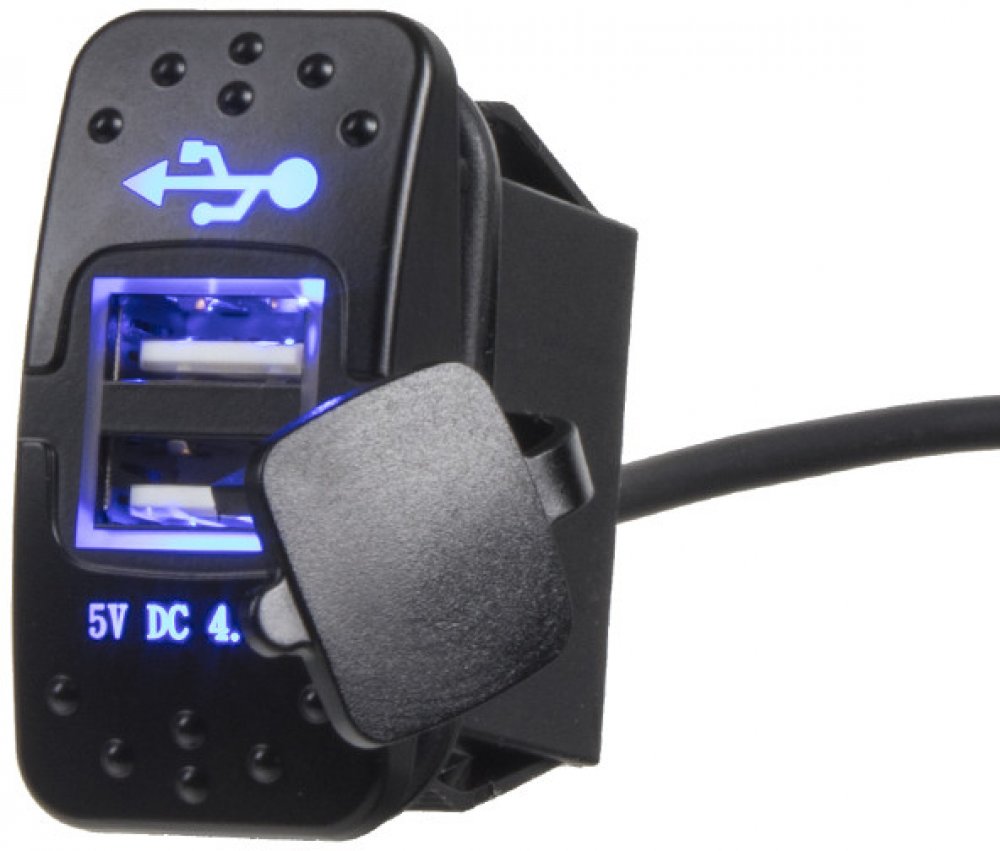 2x USB zásuvka s modrým podsvícením.