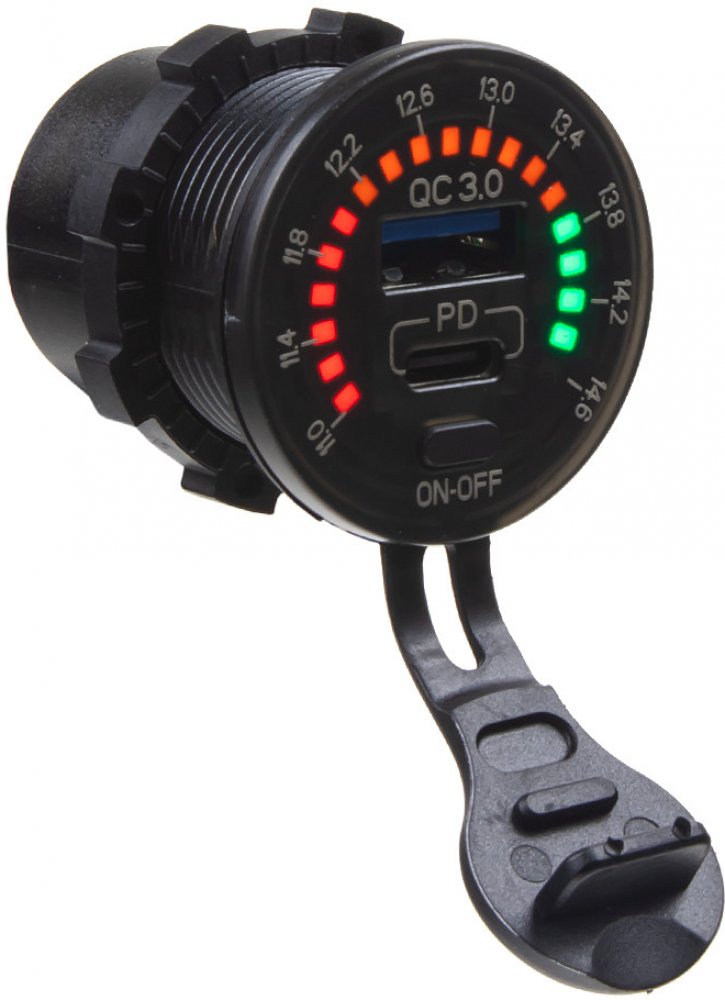 USB nabíječka do panelu, QC3.0 + USB-C, s krytkou proti prachu a vlhkosti.