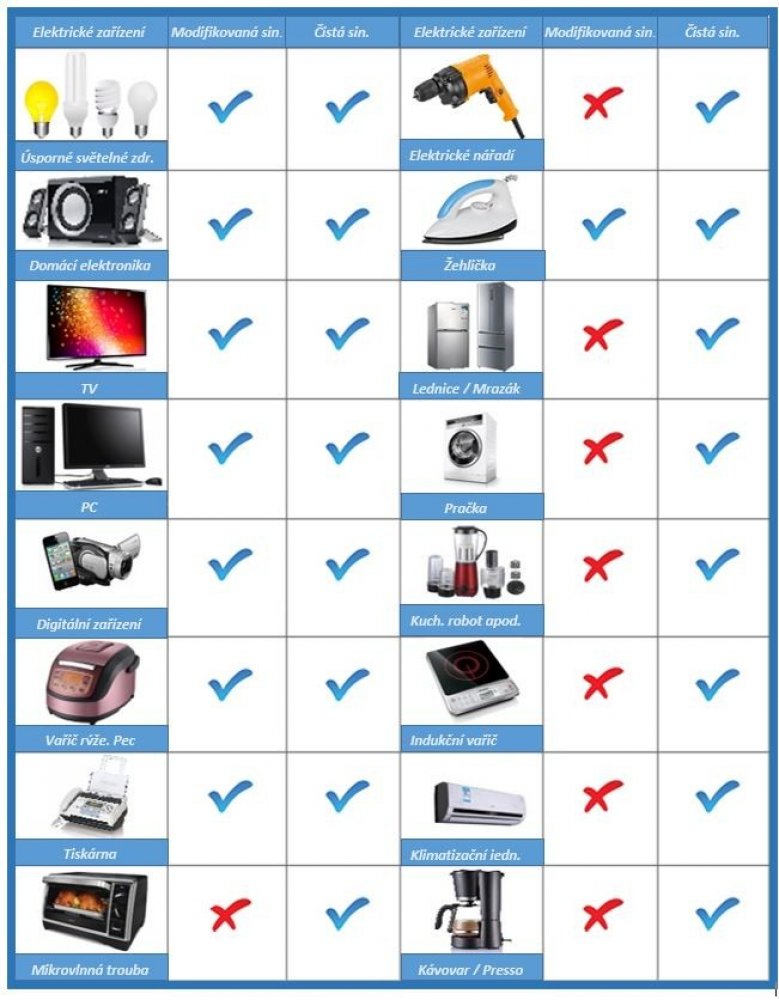 UPOZORNĚNÍ: Váháte mezi použitím sinusového měniče nebo měniče s modifikovanou sinusoidou? Mezi obrázky naleznete tabulku s doporučeným výkonem měničů. Od 14.9.2015 již nebudeme brát při reklamaci zřetel na přetížený měnič.
