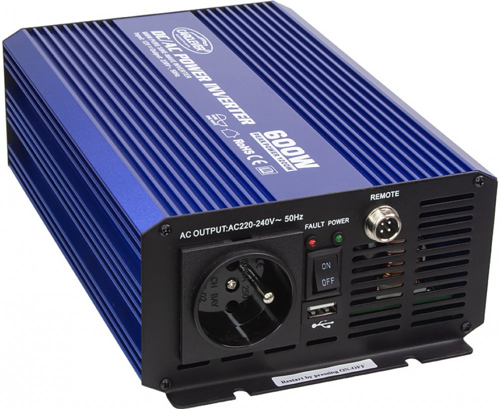 Sinusový měnič vhodný pro napájení všech druhů spotřebičů s odporovou zátěží i pro spotřebiče s indukční zátěží jako jsou motory, čerpadla, ledničky, zářivky atd. Dále je tento měnič vhodný pro spolehlivé a bezpečné napájení televizorů, DVD, počítačů, tiskáren, měřících přístrojů a jiných el. spotřebičů.