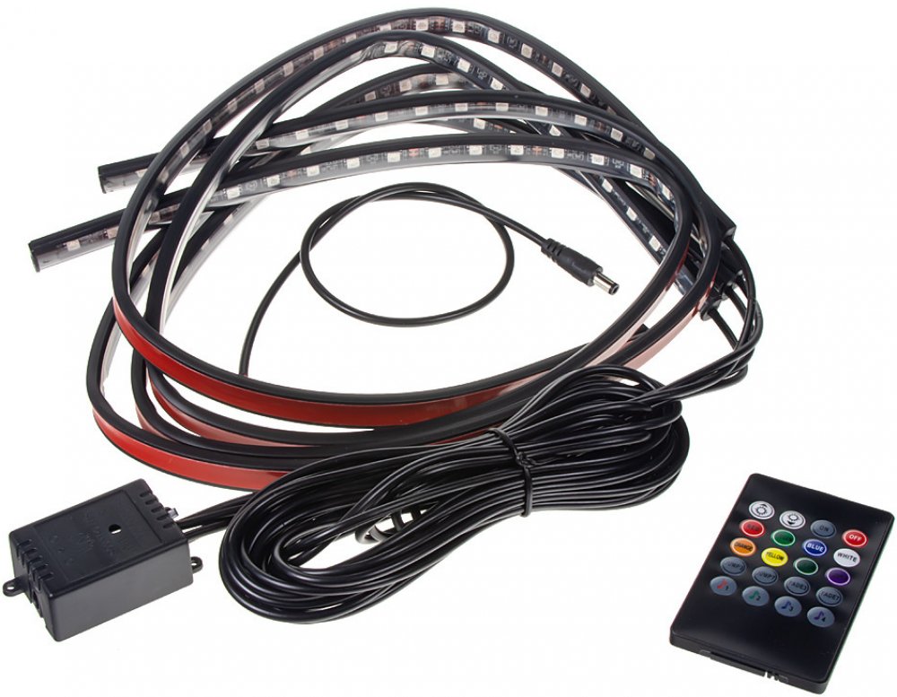 Pomocí dálkového ovladače lze volit jednotlivé barvy či přednastavené režimy. Nebo se dá zapnout možnost blikání podle hudby. (na jednotce je mikrofon).