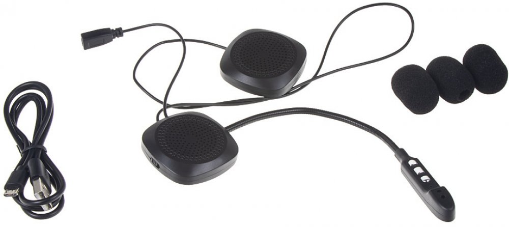 - Obsah balení: jednotka integrována do stereo sluchátek s mikrofonem na pružném držáku proti-šumovým filtrem, 2x sada nalepovací suché zipy (4 ks), 3x ochranný molitan mikrofonu, 1x USB kabel.