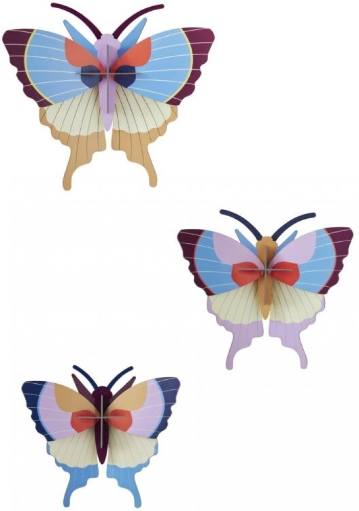 Představte si: slyšíte kapání vody, zpěv ptáků a najednou se kolem vaší hlavy třepotají tři barevná stvoření, tak jemná a okouzlující, že vám vyrazí dech. A než se nadějete, jsou pryč! Naštěstí si tuto sadu tří motýlů můžete doma pověsit na zeď a obdivovat je tak dlouho, jak se vám bude chtít.