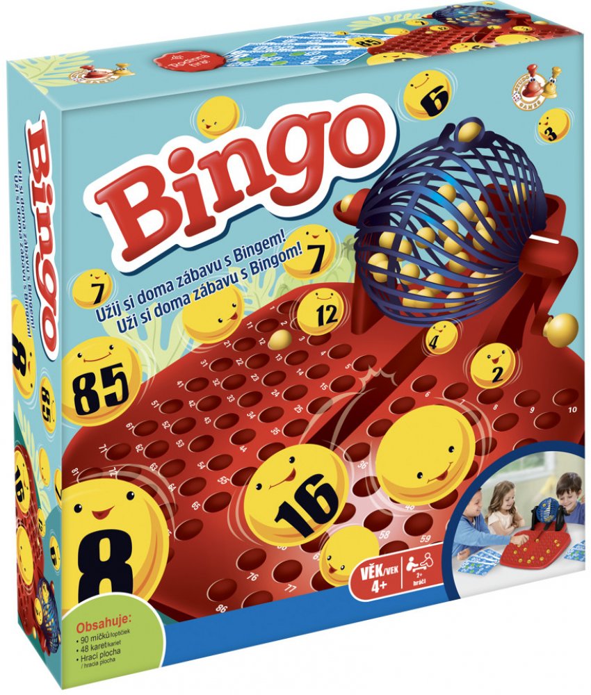 Publikace: Bingo - neuveden. Zábavná hra plná očekávání a napětí, přesně taková je stolní hra Bingo. V loterijní hře určíte, jaký obrazec na kartě má být vyplněn a hra může začít. Roztočte losovací buben a postupně náhodně vytahujte čísla. Pokud je máte na své kartě, označte si je. Jakmile se vám podaří sestavit požadovaný obrazec, zakřičte Bingo! a stáváte se vítězem hry. Hra nabízí několik herních variant a spoustu legraci si s ní užijí malí i velcí. Hra je určena pro 2 až 8 hráčů od 6 let. Publikace: Bingo - neuveden.